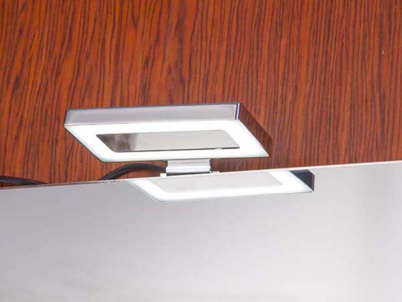 Soilsiú leordhóthanach a sholáthar: Is gnách go mbíonn soilse balla scátháin faoi stiúir suiteáilte timpeall scátháin chun solas geal, cothrom a sholáthar, ag cabhrú le húsáideoirí a fheiceáil níos soiléire agus iad ag déanamh gníomhaíochtaí cosúil le gléasadh agus bearrtha.